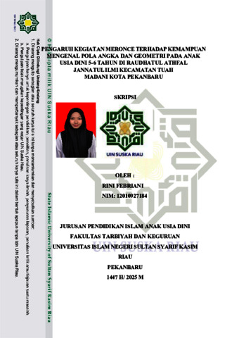 RINI FEBRIANI (2025) PENGARUH KEGIATAN MERONCE TERHADAP KEMAMPUAN MENGENAL POLA ANGKA DAN GEOMETRI PADA ANAK USIA DINI 5-6 TAHUN DI RAUDHATUL ATHFAL JANNATULILMI KECAMATAN TUAH MADANI KOTA PEKANBARU. Skripsi thesis, UNIVERSITAS ISLAM NEGERI SULTAN SYARIF KASIM.