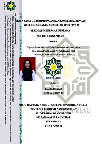 PUTRI HAYATI (2025) KERJA SAMA GURU BIMBINGAN DAN KONSELING DENGAN WALI KELAS DALAM MENGATASI BULLYING DI SEKOLAH MENENGAH PERTAMA NEGERI 8 PEKANBARU. Skripsi thesis, UNIVERSITAS ISLAM NEGERI SULTAN SYARIF KASIM.