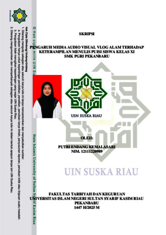 PUTRI ENDANG KEMALASARI, - (2025) PENGARUH MEDIA AUDIO VISUAL VLOG ALAM TERHADAP KETERAMPILAN MENULIS PUISI SISWA KELAS XI SMK PGRI PEKANBARU. Skripsi thesis, UNIVERSITAS ISLAM NEGERI SULTAN SYARIF KASIM RIAU.