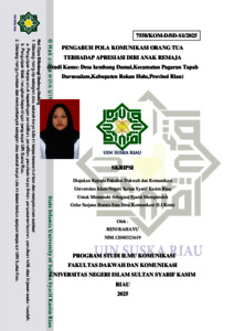 RENI RAHAYU, - (2025) PENGARUH POLA KOMUNIKASI ORANG TUA TERHADAP APRESIASI DIRI ANAK REMAJA (Studi Kasus: Desa kembang Damai,Kecamatan Pagaran Tapah Darussalam,Kabupaten Rokan Hulu,Provinsi Riau). Skripsi thesis, UNIVERSITAS ISLAM NEGERI SULTAN SYARIF KASIM RIAU.