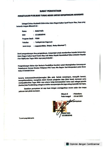ABDUL HAFIZ (2025) PENGEMBANGAN BAHAN AJAR MATA PELAJARAN IPAS TEMA AKU BAGIAN DARI MASYARAKAT PADA SISWA KELAS III SEKOLAH DASAR. Skripsi thesis, UNIVERSITAS ISLAM NEGERI SULTAN SYARIF KASIM.