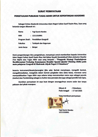 YOGI GUSRIO NANDES, - (2025) PENGARUH STRATEGI PEMBELAJARAN BERDIFERENSIASI TERHADAP KEMAMPUAN BERPIKIR SPASIAL (SPATIAL THINKING SKILS) PADA MATA PELAJARAN GEOGRAFI DI MADRASAH ALIYAH NEGERI 3 PEKANBARU. Skripsi thesis, UIN SUSKA.