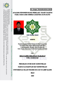 DOLI FADHLURRAHMAN HARAHAP, - (2025) ANALISIS FENOMENOLOGI PERILAKU TRASH TALKING PADA USER GAME MOBILE LEGENDS: BANG BANG. Skripsi thesis, UNIVERSITAS ISLAM NEGERI SULTAN SYARIF KASIM RIAU.