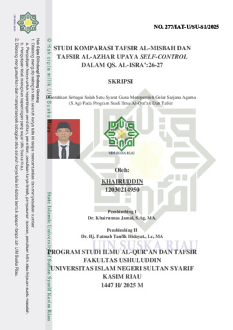 KHAIRUDDIN, - (2025) STUDI KOMPARASI TAFSIR AL-MISBAH DAN TAFSIR AL-AZHAR UPAYA SELF-CONTROL DALAM QS. AL-ISRA’:26-27. Skripsi thesis, UNIVERSITAS ISLAM NEGERI SULTAN SYARIF KASIM RIAU.