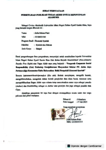 ZULIA SAHARA PUTRI, - (2025) PENGARUH CORPORATE SOCIAL RESPONSIBILITY (CSR) TERHADAP KESEJAHTERAAN MASYARAKAT SEKITAR PT. JATIM JAYA PERKASA (JJP) KECAMATAN KUBU BABUSSALAM ROHIL PERSPEKTIF EKONOMI SYARIAH. Skripsi thesis, UNIVERSITAS ISLAM NEGERI SULTAN SYARIF KASIM RIAU.