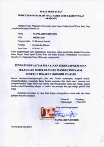 SAIPULLOH NASUTION, - (2025) PENGARUH KUALITAS PELAYANAN TERHADAP KEPUASAN PELANGGAN HOTEL EL SUNAN MANDAILING NATAL MENURUT TINJAUAN EKONOMI SYARIAH. Skripsi thesis, UNIVERSITAS ISLAM NEGERI SULTAN SYARIF KASIM RIAU.