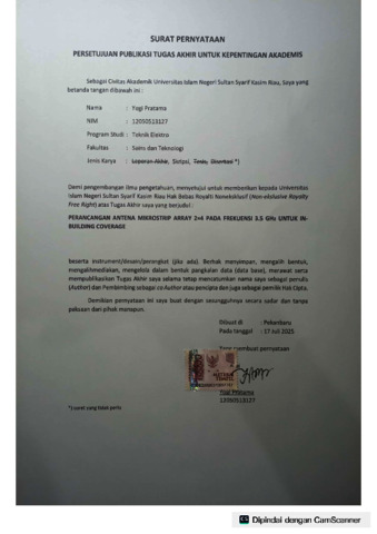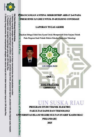 YOGI PRATAMA, - (2025) PERANCANGAN ANTENA MIKROSTRIP ARRAY 2×4 PADA FREKUENSI 3.5 GHZ UNTUK IN-BUILDING COVERAGE. Skripsi thesis, UNIVERSITAS ISLAM NEGERI SULTAN SYARIF KASIM RIAU.