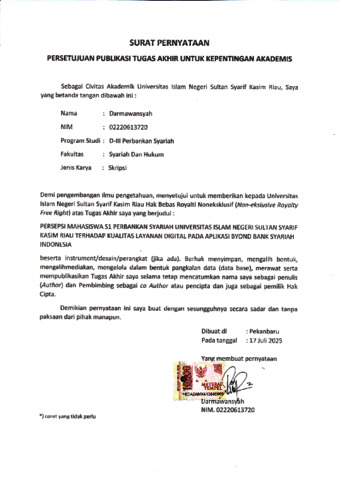 DARMAWANSYAH, - (2025) PERSEPSI MAHASISWA S1 PERBANKAN SYARIAH UNIVERSITAS ISLAM NEGERI SULTAN SYARIF KASIM RIAU TERHADAP KUALITAS LAYANAN DIGITAL PADA APLIKASI BYOND BANK SYARIAH INDONESIA. Laporan thesis, UNIVERSITAS ISLAM NEGERI SULTAN SYARIF KASIM RIAU.
