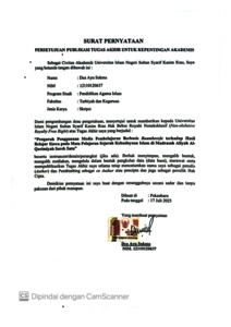 Divisions: Fakultas Tarbiyah dan Keguruan > Pendidikan Agama Islam