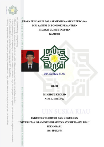 ABSTRAK M. Abdul Kholid (2025): Upaya Pengasuh dalam Membina Sikap Percaya Diri Santri di Pondok Pesantren Hidayatul Mubtadi’ien Kampar Tujuan penelitian ini untuk mengetahui upaya pengasuh dalam membina sikap percaya diri santri di Pondok Pesantren Hidayatul Mubtadi‟ien Kampar serta faktor-faktor yang mendukung dan menghambatnya. Jenis penelitian ini adalah penelitian deskriptif kualitatif. Informan utama dalam penelitian ini adalah satu orang pengasuh, sedangkan informan pendukung seorang Kiai pondok dan Ketua umum dewan harian. Teknik pengumpulan data observasi, wawancara, dan dokumentasi. Teknik analisis data dilakukan melalui tahap reduksi data, penyajian data, dan penarikan kesimpulan. Hasil penelitian menunjukkan bahwa upaya pengasuh dalam membina sikap percaya diri santri dilakukan melalui pendekatan non-formal seperti pemberian tugas, teladan, bimbingan langsung, dukungan emosional, serta pemberian apresiasi terhadap prestasi santri. Pembinaan ini juga meliputi program pondok seperti lomba antar jam‟iyyah, Majelis Sholawat Kubro (MSK), dan sorogan Al-Qur‟an yang memberikan kesempatan kepada santri untuk tampil di depan umum. Faktor pendukung upaya ini meliputi struktur program yang terjadwal, kerja sama antara pengasuh dan pengurus pondok, kebijakan pondok yang mendukung keterlibatan santri, serta tersedianya fasilitas seperti aula, masjid, podium, pengeras suara dan perlengkapan pembelajaran. Sedangkan faktor penghambatnya adalah terbatasnya waktu pembinaan langsung dari pengasuh, evaluasi yang belum dilakukan secara tertulis, serta latar belakang santri yang beragam dari sisi pendidikan, sosial, dan kepercayaan diri yang belum merata. Kata Kunci: Upaya Pengasuh, Percaya Diri, Santri, Pondok Pesantren, Pembinaan