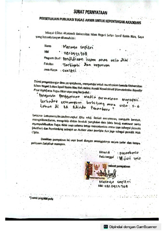 | Divisions: | Fakultas Tarbiyah dan Keguruan > Pendidikan Islam Anak Usia Dini | ||||||||