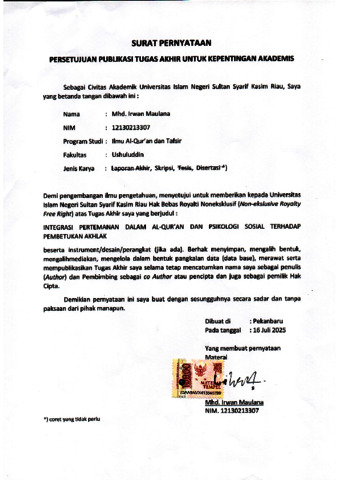 SURAT PUBLIKASI IRWAN - MHD.IRWAN MAULANA Ilmu Alquran dan Tafsir S1.pdf - Published Version