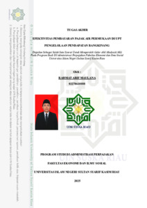 RAHMAT ARIF MAULANA, - (2025) EFEKTIVITAS PEMBAYARAN PAJAK AIR PERMUKAAN DI UPT PENGELOLAAN PENDAPATAN BANGKINANG. Laporan thesis, UNIVERSITAS ISLAM NEGERI SULTAN SYARIF KASIM RIAU.