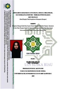 SYARLI NUR AISYAH, - (2025) PENGARUH KESADARAN ANTI-FRAUD, BUDAYA ORGANISASI, DAN MORALITAS INDIVIDU TERHADAP PENCEGAHAN KECURANGAN (Studi Empiris Pada Inspektorat Kabupaten Kampar). Skripsi thesis, UNIVERSITAS ISLAM NEGERI SULTAN SYARIF KASIM RIAU.