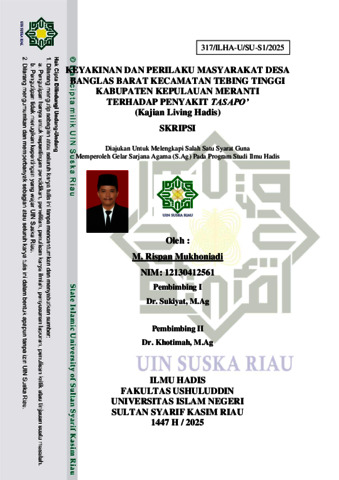 M. RISPAN MUKHONIADI, - (2025) KEYAKINAN DAN PERILAKU MASYARAKAT DESA BANGLAS BARAT KECAMATAN TEBING TINGGI KABUPATEN KEPULAUAN MERANTI TERHADAP PENYAKIT TASAPO’ (Kajian Living Hadis). Skripsi thesis, Universitas Islam Negeri Sultan Syarif Kasim Riau.