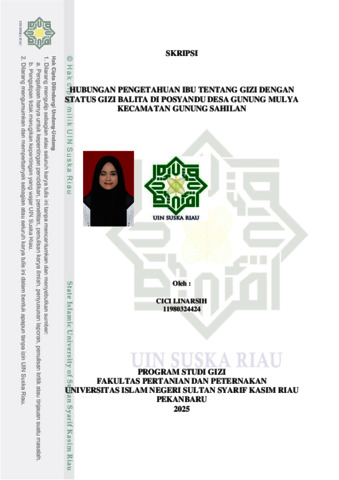 CICI LINARSIH, - (2025) HUBUNGAN PENGETAHUAN IBU TENTANG GIZI DENGAN STATUS GIZI BALITA DI POSYANDU DESA GUNUNG MULYA KECAMATAN GUNUNG SAHILAN. Skripsi thesis, Universitas Islam Negeri Sultan Syarif Kasim Riau.