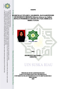 SHAMRATUL AINI NABILA, - (2025) KANDUNGAN VITAMIN C, KLOROFIL, DAN KAROTENOID MICROGREENS BROKOLI (Brassica oleracea var. Italica) DENGAN PEMBERIAN AIR KELAPA PADA BERBAGAI MEDIA TANAM. Skripsi thesis, UNIVERSITAS ISLAM NEGERI SULTAN SYARIF KASIM RIAU.
