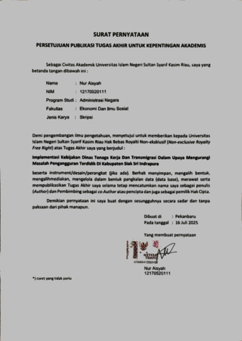 PERNYATAAN - NUR AISYAH ADMINISTRASI NEGARA.pdf - Published Version Download (230kB) | Preview |