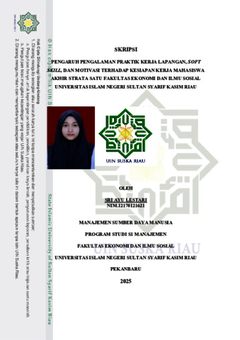 SRI AYU LESTARI, - (2025) PENGARUH PENGALAMAN PRAKTIK KERJA LAPANGAN, SOFT SKILL, DAN MOTIVASI TERHADAP KESIAPAN KERJA MAHASISWA AKHIR STRATA SATU FAKULTAS EKONOMI DAN ILMU SOSIAL UNIVERSITAS ISLAM NEGERI SULTAN SYARIF KASIM RIAU. Skripsi thesis, UNIVERSITAS ISLAM NEGERI SULTAN SYARIF KASIM RIAU.