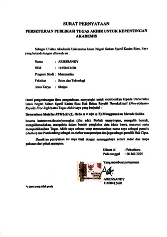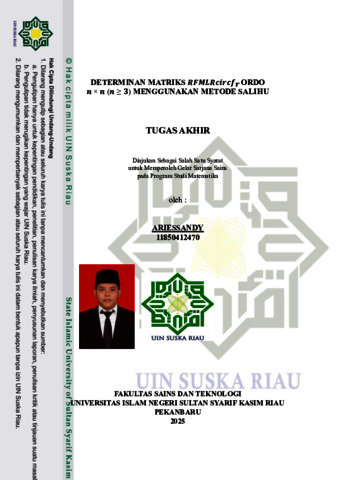 ARIESSANDY, - (2025) DETERMINASI MATRIKS RFMLcircf r ORDO n x n (n ≥ 3) DENGAN MENGGUNAKAN METODE SALIHU. Skripsi thesis, UNIVERSITAS ISLAM NEGERI SULTAN SYARIF KASIM RIAU.