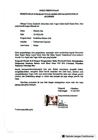 Divisions: Fakultas Tarbiyah dan Keguruan > Pendidikan Bahasa Arab