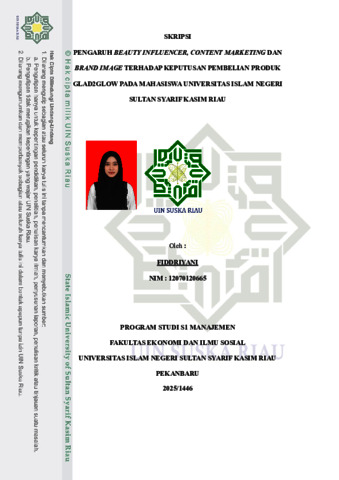 PENGARUH BEAUTY INFLUENCER, CONTENT MARKETING DAN BRAND IMAGE TERHADAP KEPUTUSAN PEMBELIAN PRODUK GLAD2GLOW PADA MAHASISWA UNIVERSITAS ISLAM NEGERI SULTAN SYARIF KASIM RIAU