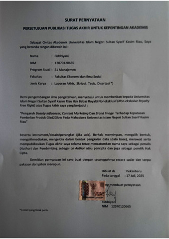 Surat pernyataan publikasi - Fiddriyani.pdf - Published Version