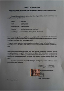 FIDDRIYANI, - (2025) PENGARUH BEAUTY INFLUENCER, CONTENT MARKETING DAN BRAND IMAGE TERHADAP KEPUTUSAN PEMBELIAN PRODUK GLAD2GLOW PADA MAHASISWA UNIVERSITAS ISLAM NEGERI SULTAN SYARIF KASIM RIAU. Skripsi thesis, UNIVERSITAS ISLAM NEGERI SULTAN SYARIF KASIM RIAU.