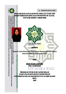 DIAH TIARA LESTARI, - (2025) PENGARUH KUALITAS KONTEN PODCAST CLOSE THE DOOR TERHADAP KEPUASAN PENONTON DI KANAL YOUTUBE DEDDY CORBUZIER. Skripsi thesis, UNIVERSITAS ISLAM NEGERI SULTAN SYARIF KASIM RIAU.