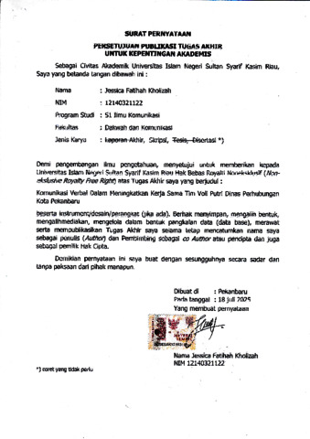 SURAT PERNYATAAN - Jessica Fatihah.pdf - Published Version Download (639kB) | Preview |