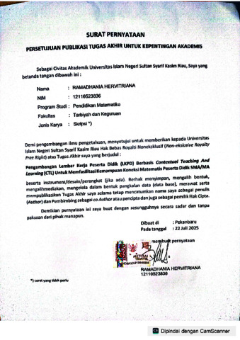 Persetujuan Publikasi - RAMADHANIA HERVITRIANA PENDIDIKAN MATEMATIKA.pdf - Published Version Download (653kB) | Preview |