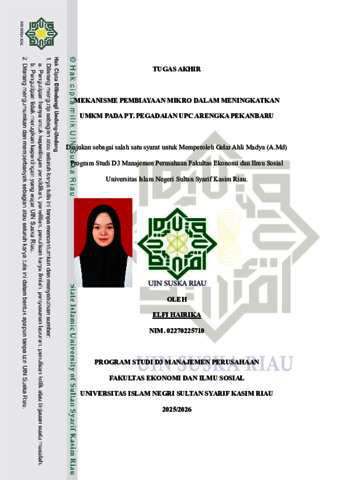 ELFI HAIRIKA, - (2025) MEKANISME PEMBIAYAAN MIKRO DALAM MENINGKATKAN UMKM PADA PT. PEGADAIAN UPC ARENGKA PEKANBARU. Laporan thesis, UNIVERSITAS ISLAM NEGERI SULTAN SYARIF KASIM RIAU.