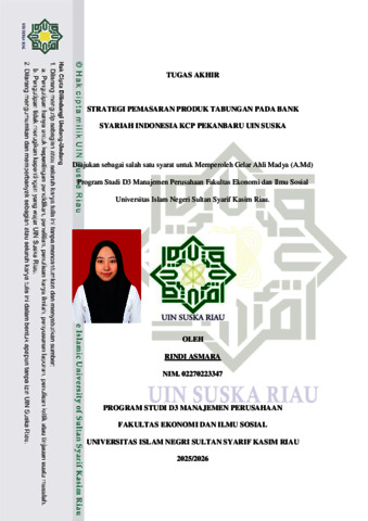 RINDI ASMARA, - (2025) STRATEGI PEMASARAN PRODUK TABUNGAN PADA BANK SYARIAH INDONESIA KCP PEKANBARU UIN SUSKA. Laporan thesis, UNIVERSITAS ISLAM NEGERI SULTAN SYARIF KASIM RIAU.