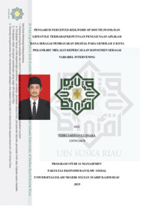 ABSTRAK PENGARUH PERCEIVED RISK,WORD.OF.MOUTH.(WOM).DAN LIFESTYLE TERHADAP.KEPUTUSAN.PENGGUNAAN APLlKASl DANA SEBAGAI PEMBAYARAN DIGITAL PADA GENERASI Z KOTA PEKANBARU MELALUl KEPERCAYAAN KONSUMEN SEBAGAl VARlABEL lNTERVENlNG PADA Oleh : FEBRI SARIFAN KUSWARA NIM. 12070116679 Dompet Digital (DANA) Indonesia, sebuah platform pembayaran digital (digital wallet) yang berbasis aplikasi mobile. Aplikasi ini dikembangkan oleh PT Espay Debit Indonesia Koe dan resmi diluncurkan pada tahun 2018. DANA dirancang untuk memudahkan pengguna dalam melakukan berbagai jenis transaksi keuangan secara cepat, aman, dan efisien hanya melalui ponsel. Tujuan penelitian ini adalah untuk mengetahui pengaruh perceived risk, word of mouth, dan lifestyle terhadap keputusan penggunaan melalui kepercayaan konsumen sebagai variabel intervening. Penelitian ini dilakukan di pekanbaru. Populasi dalam penelitian ini tidak diketahui jumlahnya, maka dengan rumus lameshow ditetapkan jumlah sampel sebanyak 100 responden dengan metode purposive sampling. Analisis data menggunakan analisis jalur dengan bantuan Smart – PLS. Hasil ini menunjukan bahwa kepercayaan konsumen dapat dipengaruhi oleh perceived risk,word of mouth dan lifestyle sebesar 0,585 atau sebesar 58,5% sedangkan sisanya 41,5% dipengaruhi oleh variabel lain. Sedangkan Keputusan penggunaan dapat dipengaruhi oleh Kepercayaan konsumen sebesar 0,499 atau 49,9% sementara 50,1% dipengaruhi oleh variabel lain. Kata Kunci : Perceived Risk, Word Of Mouth, Lifestyle, Kepercayaan dan Keputusan