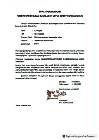 NUR AISYAH, - (2025) STRATEGI PEMERINTAH DESA DALAM PENGEMBANGAN BADAN USAHA MILIK DESA DIKEPENGHULUAN BAGAN SINEMBAH. Skripsi thesis, UNIVERSITAS ISLAM NEGERI SULTAN SYARIF KASIM RIAU.