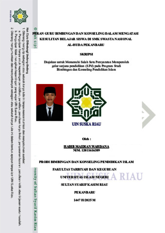 HABIB MAIDIAN WAHDANA (2025) PERAN GURU BIMBINGAN DAN KONSELING DALAM MENGATASI KESULITAN BELAJAR SISWA DI SMK SWASTA NASIONAL AL-HUDA PEKANBARU. Skripsi thesis, UNIVERSITAS ISLAM NEGERI SULTAN SYARIF KASIM RIAU.