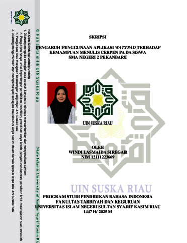 WINDI LASMAIDA SIREGAR, - (2025) PENGARUH PENGGUNAAN APLIKASI WATTPAD TERHADAP KEMAMPUAN MENULIS CERPEN PADA SISWA SMA NEGERI 2 PEKANBARU. Skripsi thesis, UNIVERSITAS ISLAM NEGERI SULTAN SYARIF KASIM RIAU.