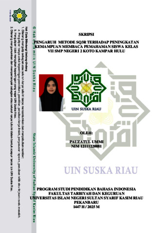 PAUZATUL UMMI, - (2025) PENGARUH METODE SQ3R TERHADAP PENINGKATAN KEMAMPUAN MEMBACA PEMAHAMAN SISWA KELAS VII SMP NEGERI 2 KOTO KAMPAR HULU. Skripsi thesis, UNIVERSITAS ISLAM NEGERI SULTAN SYARIF KASIM RIAU.