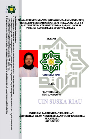 TANTI RAHAYU, - (2025) PENGARUH KEGIATAN 2M (MENGGAMBAR & MENEMPEL) TERHADAP PERKEMBANGAN SENI RUPA ANAK USIA 5-6 TAHUN DI TK BAKTI PERTIWI DESA BATANG PANE II PADANG LAWAS UTARA SUMATERA UTARA. Skripsi thesis, UNIVERSITAS ISLAM NEGERI SULTAN SYARIF KASIM RIAU.