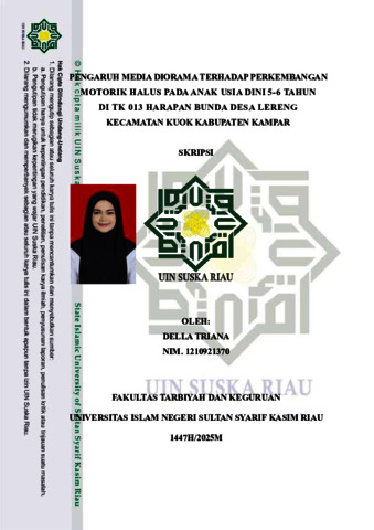 DELLA TRIANA, - (2025) PENGARUH MEDIA DIORAMA TERHADAP PERKEMBANGAN MOTORIK HALUS PADA ANAK USIA DINI 5-6 TAHUN DI TK 013 HARAPAN BUNDA DESA LERENG KECAMATAN KUOK KABUPATEN KAMPAR. Skripsi thesis, UNIVERSITAS ISLAM NEGERI SULTAN SYARIF KASIM RIAU.