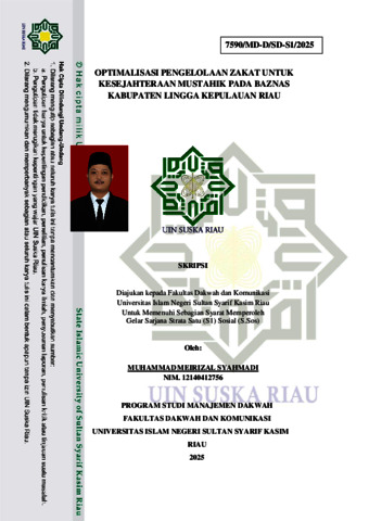 MUHAMMAD MEIRIZAL SYAHMADI (2025) OPTIMALISASI PENGELOLAAN ZAKAT UNTUK KESEJAHTERAAN MUSTAHIK PADA BAZNAS KABUPATEN LINGGA KEPULAUAN RIAU. Skripsi thesis, UNIVERSITAS ISLAM NEGERI SULTAN SYARIF KASIM.
