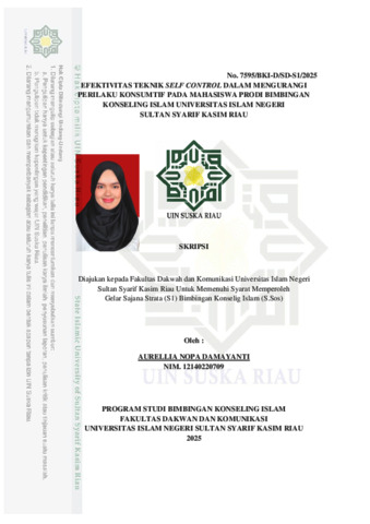 EFEKTIVITAS TEKNIK SELF CONTROL DALAM MENGURANGI PERILAKU KONSUMTIF PADA MAHASISWA PRODI BIMBINGAN KONSELING ISLAM UNIVERSITAS ISLAM NEGERI SULTAN SYARIF KASIM RIAU