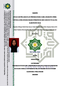 NINDI SETRI, - (2025) EVALUASI PELAKSANAAN PROGRAM KELUARGA HARAPAN (PKH) UNTUK LANSIA DI KELURAHAN PERAWANG KECAMATAN TUALANG KABUPATEN SIAK. Laporan thesis, UNIVERSITAS ISLAM NEGERI SULTAN SYARIF KASIM RIAU.