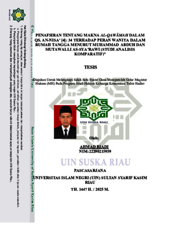 PENAFSIRAN TENTANG MAKNA AL-QAWÃMAH DALAM QS. AN-NISA’ [4]: 34 TERHADAP PERAN WANITA DALAM RUMAH TANGGA MENURUT MUHAMMAD ABDUH DAN MUTAWALLI AS-SYA’RAWI (STUDI ANALISIS KOMPARATIF)”