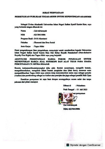 ZUL ADRIANSYAH, - (2025) AKUNTANSI PERHITUNGAN HARGA POKOK PENJUALAN UNTUK MENENTUKAN HARGA JUAL FOTOKOPI DAN ALAT TULIS PADA USAHA PERCETAKAN CV. MITRA SEJAJAR. Skripsi thesis, Universitas Islam Negeri Sultan Syarif Kasim Riau.