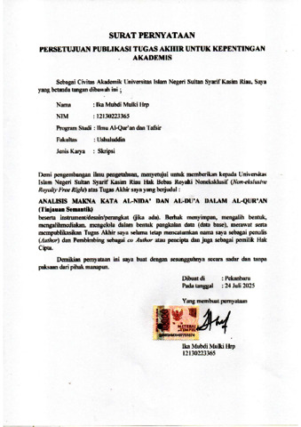 IKA MUBDI MULKI HRP, - (2025) ANALISIS MAKNA KATA AL-NIDA’ DAN AL-DU’A DALAM AL-QUR’AN (Tinjauan Semantik). Skripsi thesis, UNIVERSITAS ISLAM NEGERI SULTAN SYARIF KASIM RIAU.