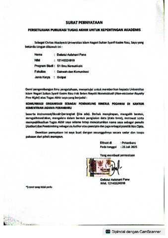 DELIATUL ASFAHANI PANE, - (2025) KOMUNIKASI ORGANISASI SEBAGAI PENDUKUNG KINERJA PEGAWAI DI KANTOR KEMENTRIAN AGAMA PEKANBARU. Skripsi thesis, UNIVERSITAS ISLAM NEGERI SULTAN SYARIF KASIM RIAU.