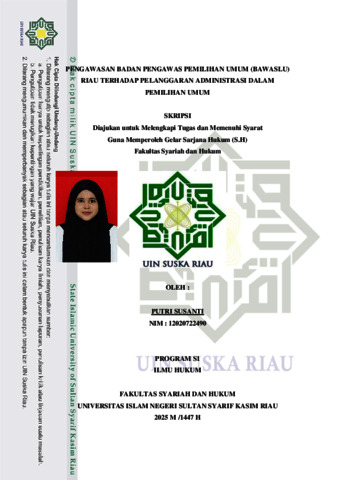 PUTRI SUSANTI, - (2025) PENGAWASAN BADAN PENGAWAS PEMILIHAN UMUM (BAWASLU) RIAU TERHADAP PELANGGARAN ADMINISTRASI DALAM PEMILIHAN UMUM. Skripsi thesis, UNIVERSITAS ISLAM NEGERI SULTAN SYARIF KASIM RIAU.