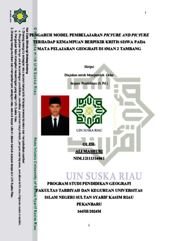 ALI MASHURI (2025) PENGARUH MODEL PEMBELAJARAN PICTURE AND PICTURE TERHADAP KEMAMPUAN BERPIKIR KRITIS SISWA PADA MATA PELAJARAN GEOGRAFI DI SMAN 2 TAMBANG. Skripsi thesis, UNIVERSITAS ISLAM NEGERI SULTAN SYARIF KASIM RIAU.