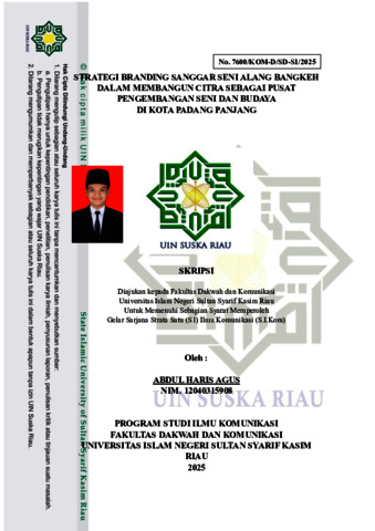 ABDUL HARIS AGUS, - (2025) STRATEGI BRANDING SANGGAR SENI ALANG BANGKEH DALAM MEMBANGUN CITRA SEBAGAI PUSAT PENGEMBANGAN SENI DAN BUDAYA DI KOTA PADANG PANJANG. Skripsi thesis, Universitas Islam Negeri Sultan Syarif Kasim Riau.